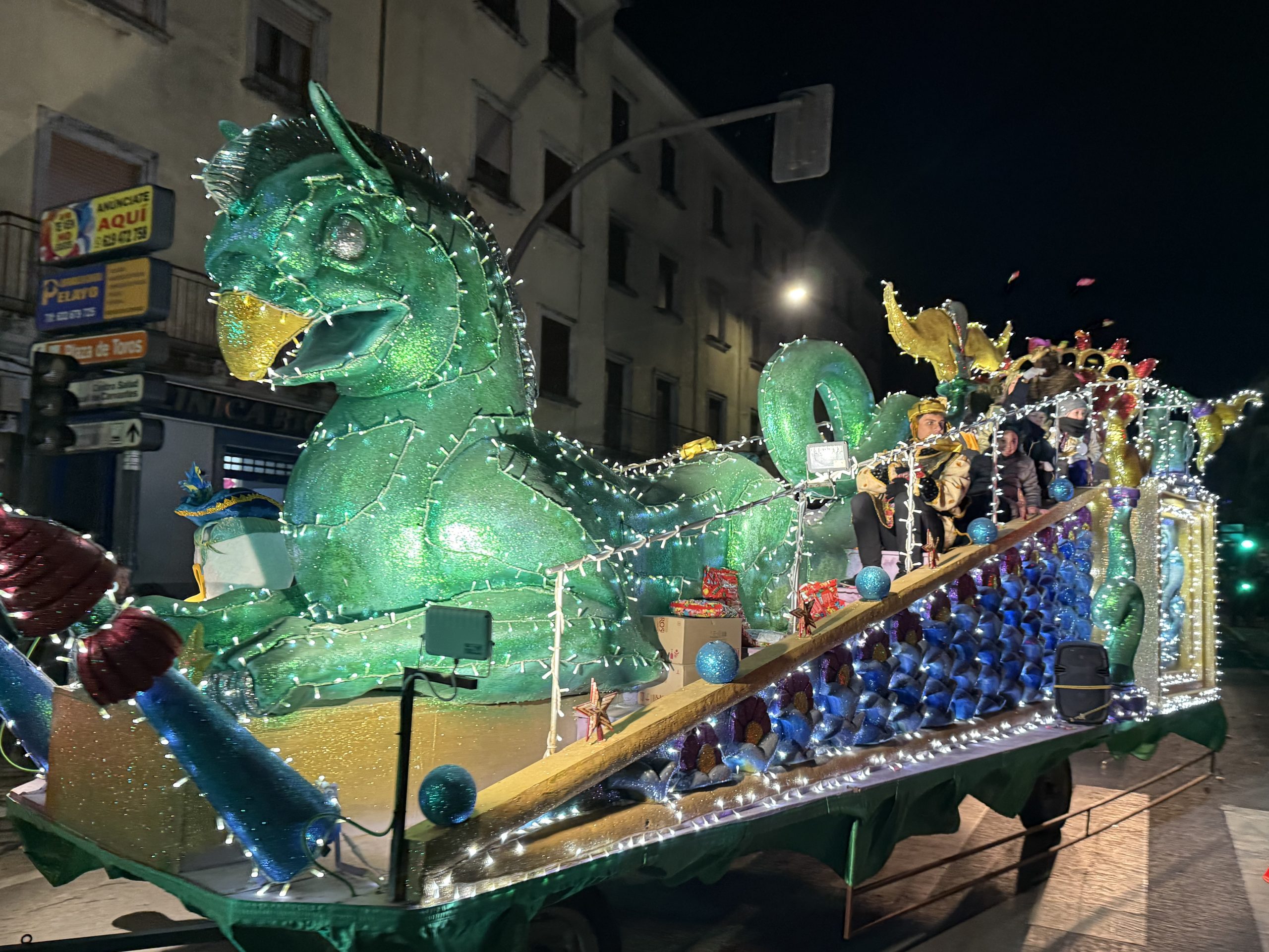 Durante el recorrido, los Reyes repartieron ilusión, sonrisas y caramelos entre los numerosos niños y familias que se acercaron a disfrutar del tradicional desfile.