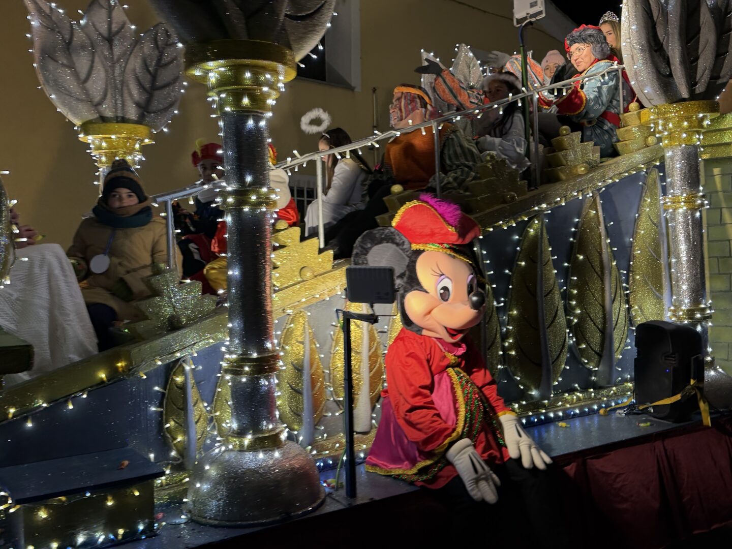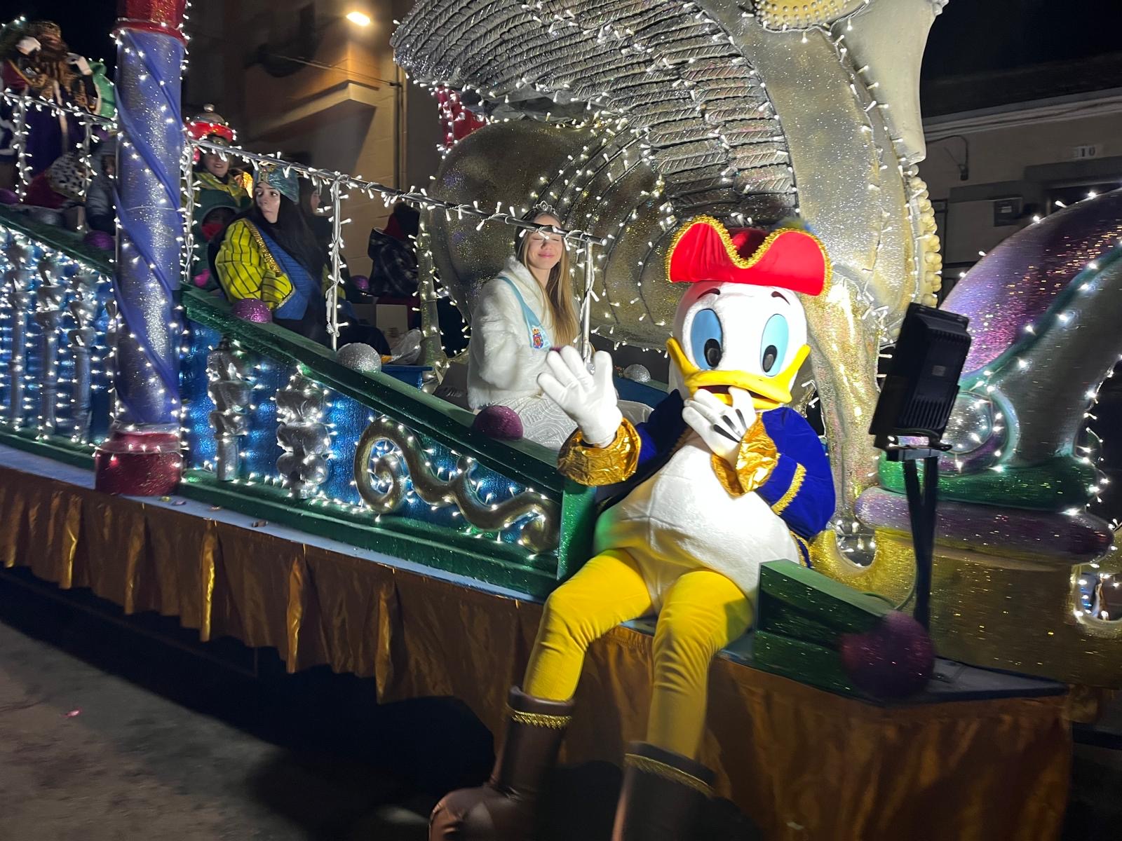 Sus Majestades los Reyes Magos de Oriente llegaron a Guijuelo en una espectacular cabalgata, recorriendo las calles en carrozas reales acompañados de sus pajes y ayudantes. El desfile estuvo animado por cuatro conocidos personajes de Disney —Mickey, Minnie, Donald y Daisy— que aportaron aún más magia y diversión a una tarde muy especial.