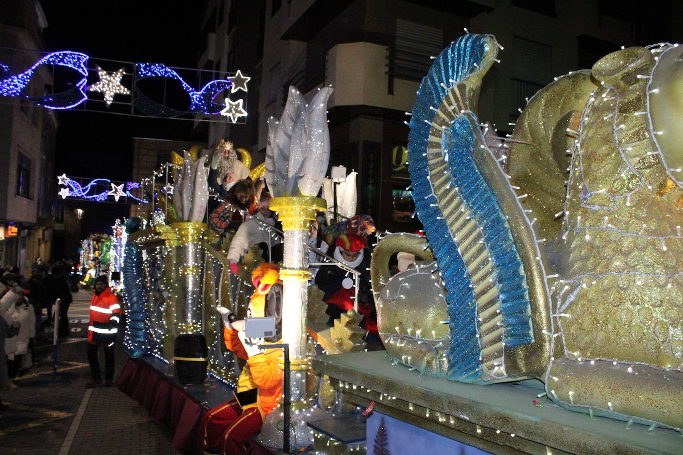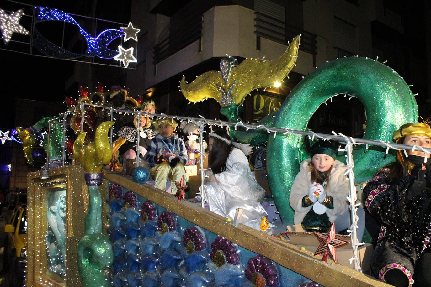 Durante el recorrido, los Reyes repartieron ilusión, sonrisas y caramelos entre los numerosos niños y familias que se acercaron a disfrutar del tradicional desfile.
