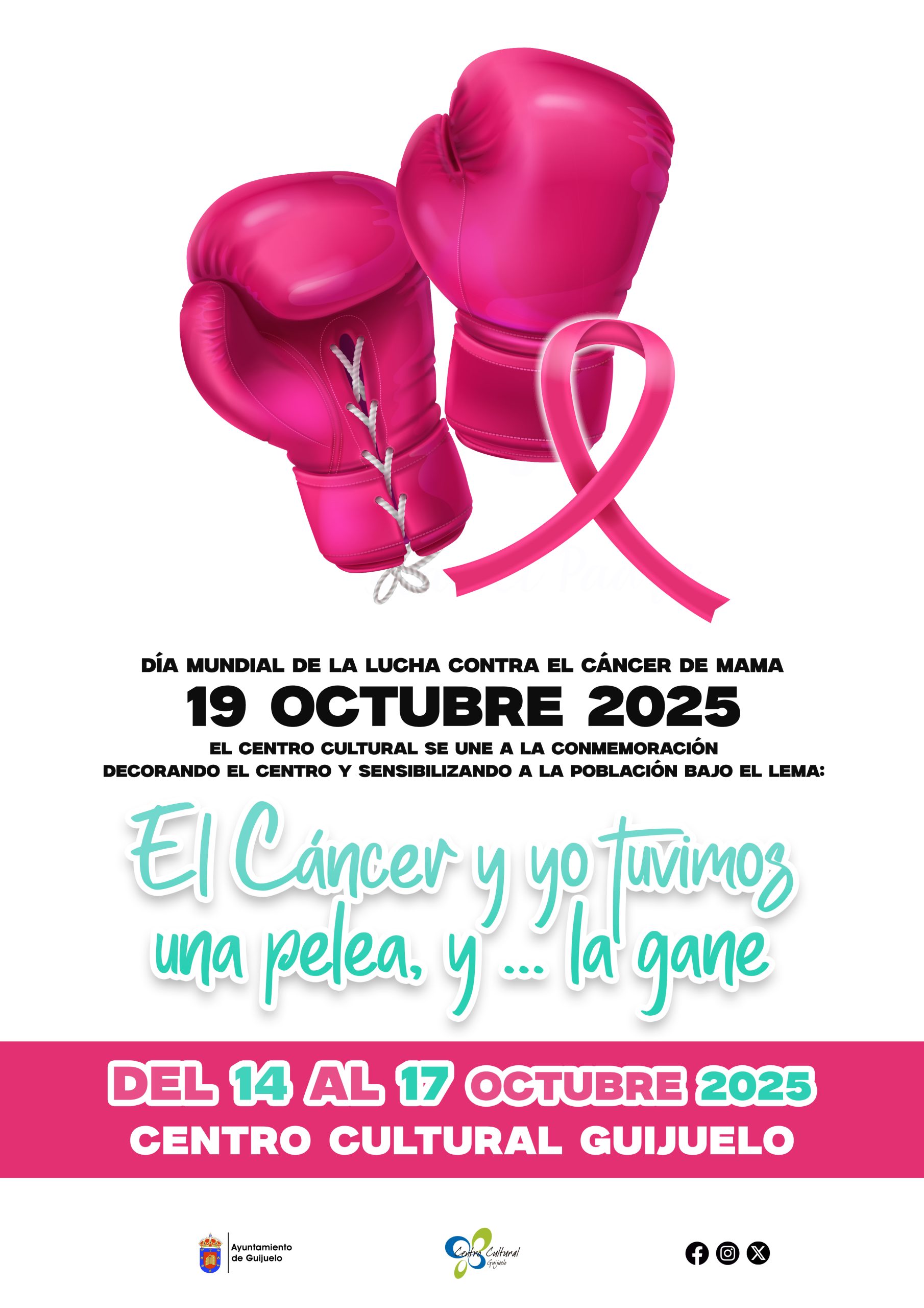 Con motivo del Día Mundial de la Lucha contra el Cáncer de Mama, el 19 de octubre, el Centro Cultural de Guijuelo se suma a la programación en rosa para mostrar su apoyo a todas las personas que han enfrentado esta enfermedad.