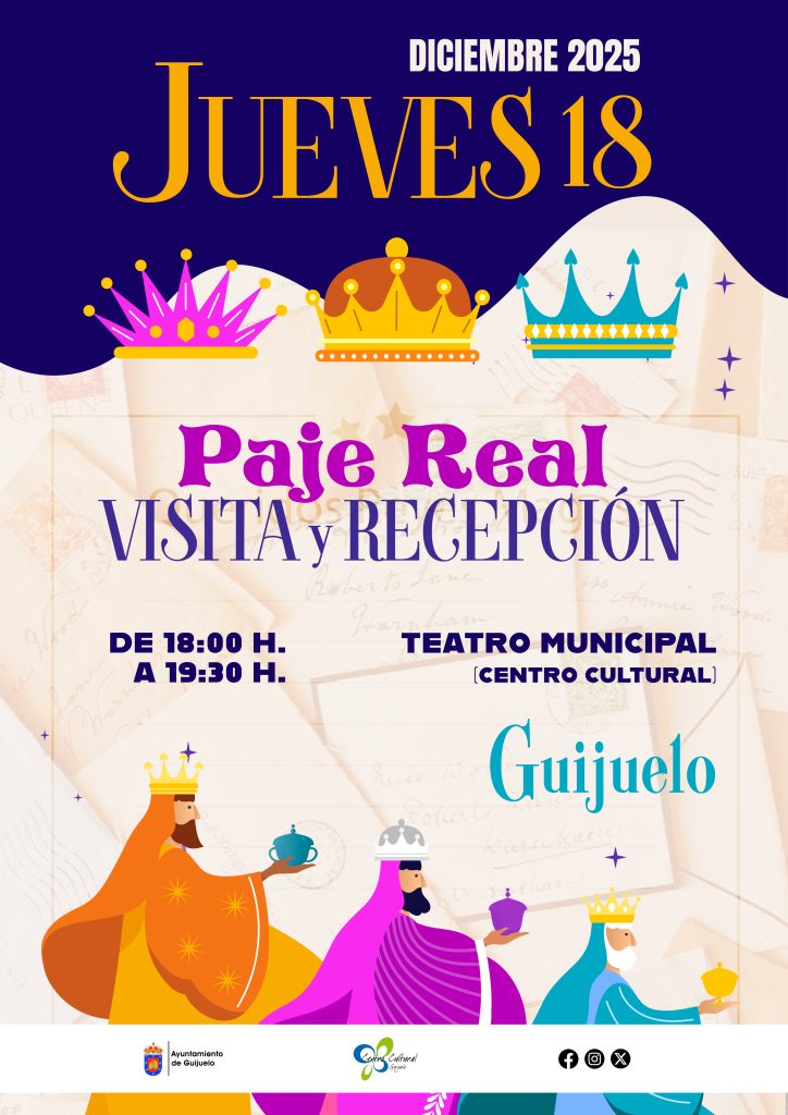 Hoy jueves, 18 de diciembre, el Centro Cultural de Guijuelo recibe una visita muy especial: un Paje Real de Sus Majestades los Reyes Magos de Oriente estará en el Teatro del Centro Cultural para recibir a todos los niños y niñas del municipio.