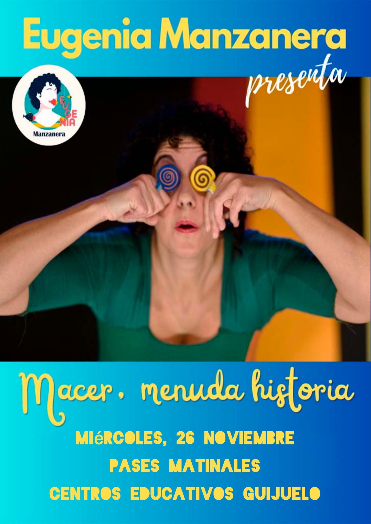 El próximo miércoles 26 de noviembre, el Centro Cultural de Guijuelo acogerá el espectáculo “Nacer, menuda historia”, de la actriz y narradora Eugenia Manzanera, una de las creadoras de referencia en el teatro y la narración oral para la primera infancia.