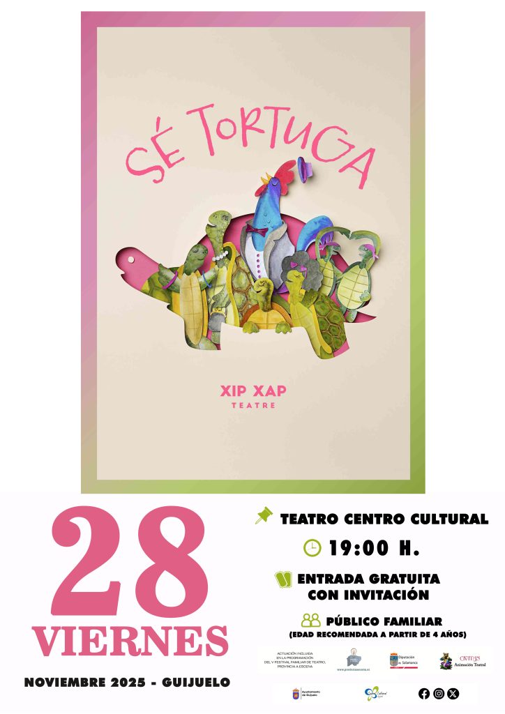 Xip Xap Teatro presenta el próximo 28 de noviembre, a las 19:00h., en el Teatro Municipal el espectáculo Sé Tortuga.
