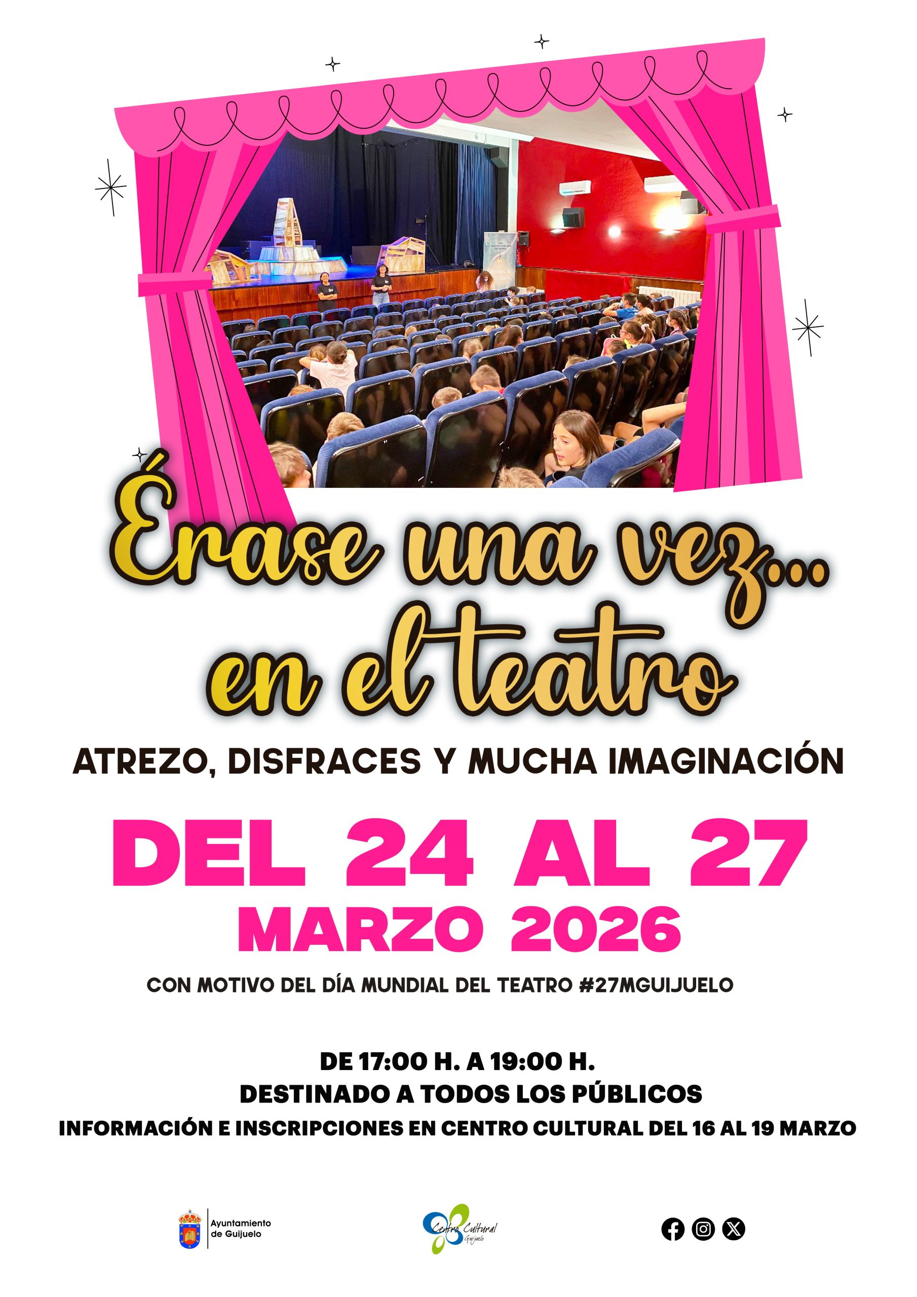 Desde hoy y hasta el jueves 19 de marzo permanecerá abierto el plazo de inscripción para participar en “Érase una vez… en el teatro”, una propuesta pensada para disfrutar de una experiencia creativa y divertida en el Teatro Municipal.