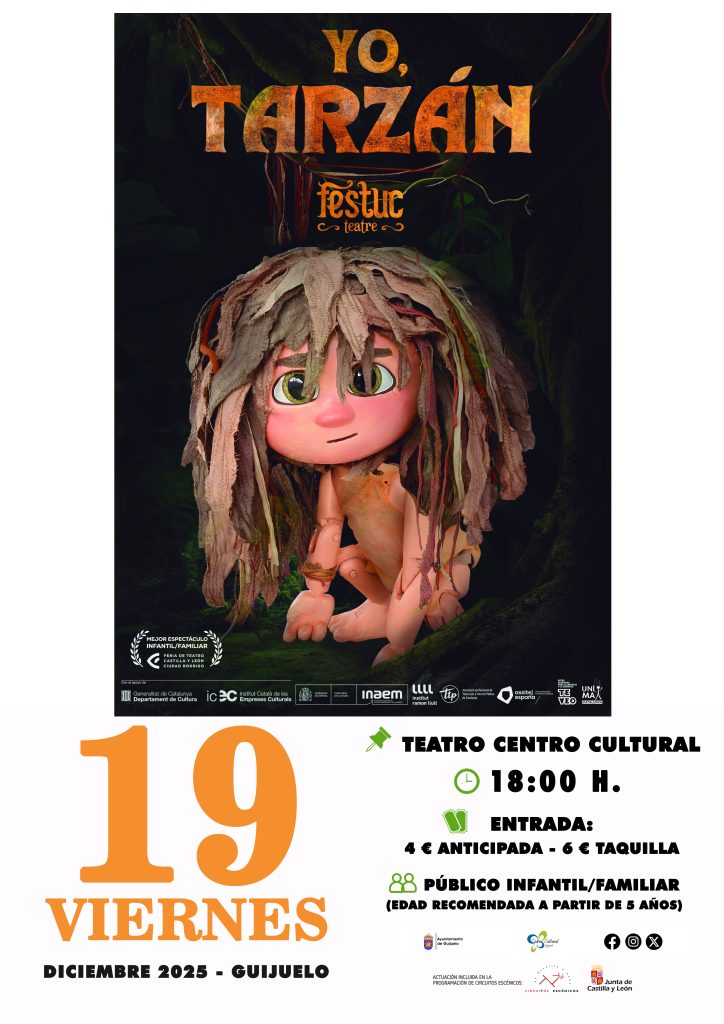 Una vez más, Festuc Teatro nos presenta la adaptación de un cuento clásico, Tarzán de Edgar Rice Burroughs. Un espectáculo de teatro y títeres, divertido y emotivo, acompañado por una banda sonora trepidante, unos cambios de escenografía que os dejarán boquiabiertos y un mensaje final que, como siempre, os hará reflexionar. ¡No os lo podéis perder!